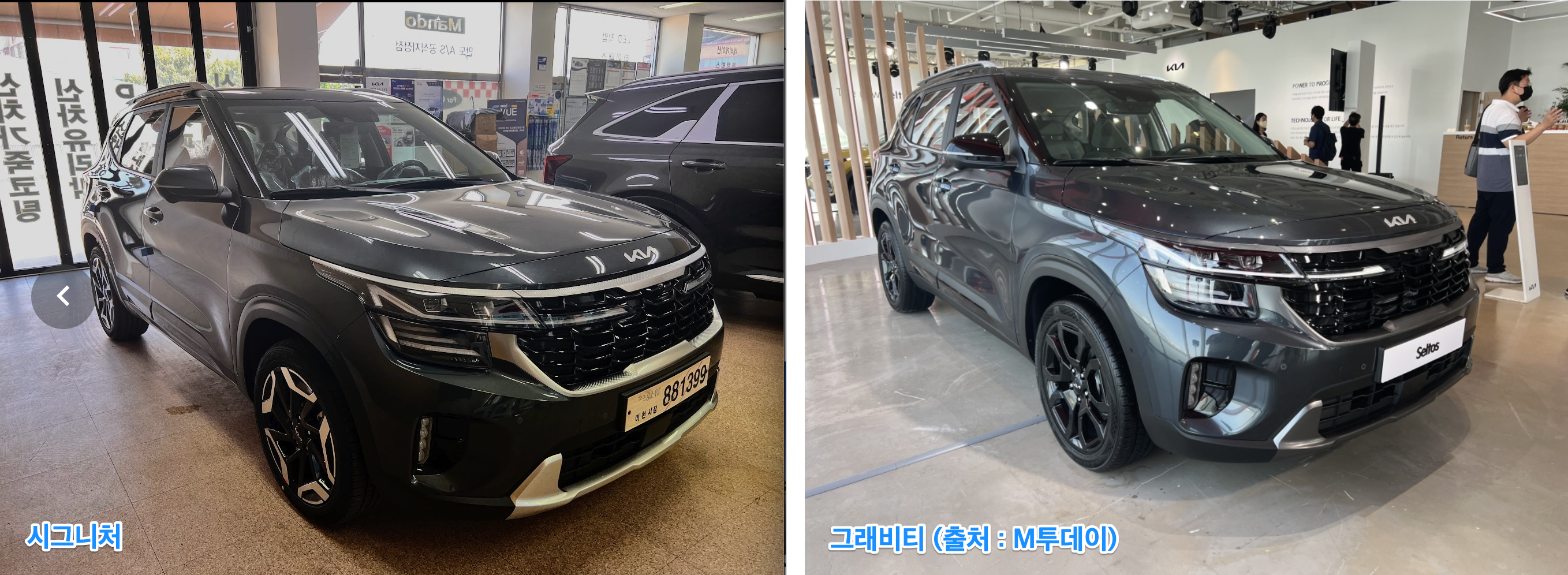 그래비티 대신 시그니처 선택한 이유는 단순합니다. 바퀴까지 너무 시커먼게 제가 볼 때는 별로더라구요. 저는 좀 더 알록달록한게 좋아서 그래비티 대신 시그니처를 선택했습니다. 원래는 차 외관 색상도 플라톤 블루를 생각하고 있었어요. 트레일 블레이저 민트 색깔이랑 비슷한 거 같아서요. 하지만 동생이 그래비티 그레이 색상을 추천해줬고, 그래비티 그레이 색상에도 그래비티 단계보다는 시그니처 색상이 더 어울린다고 생각했어요. 독자분이 보시기엔 어떤가요?