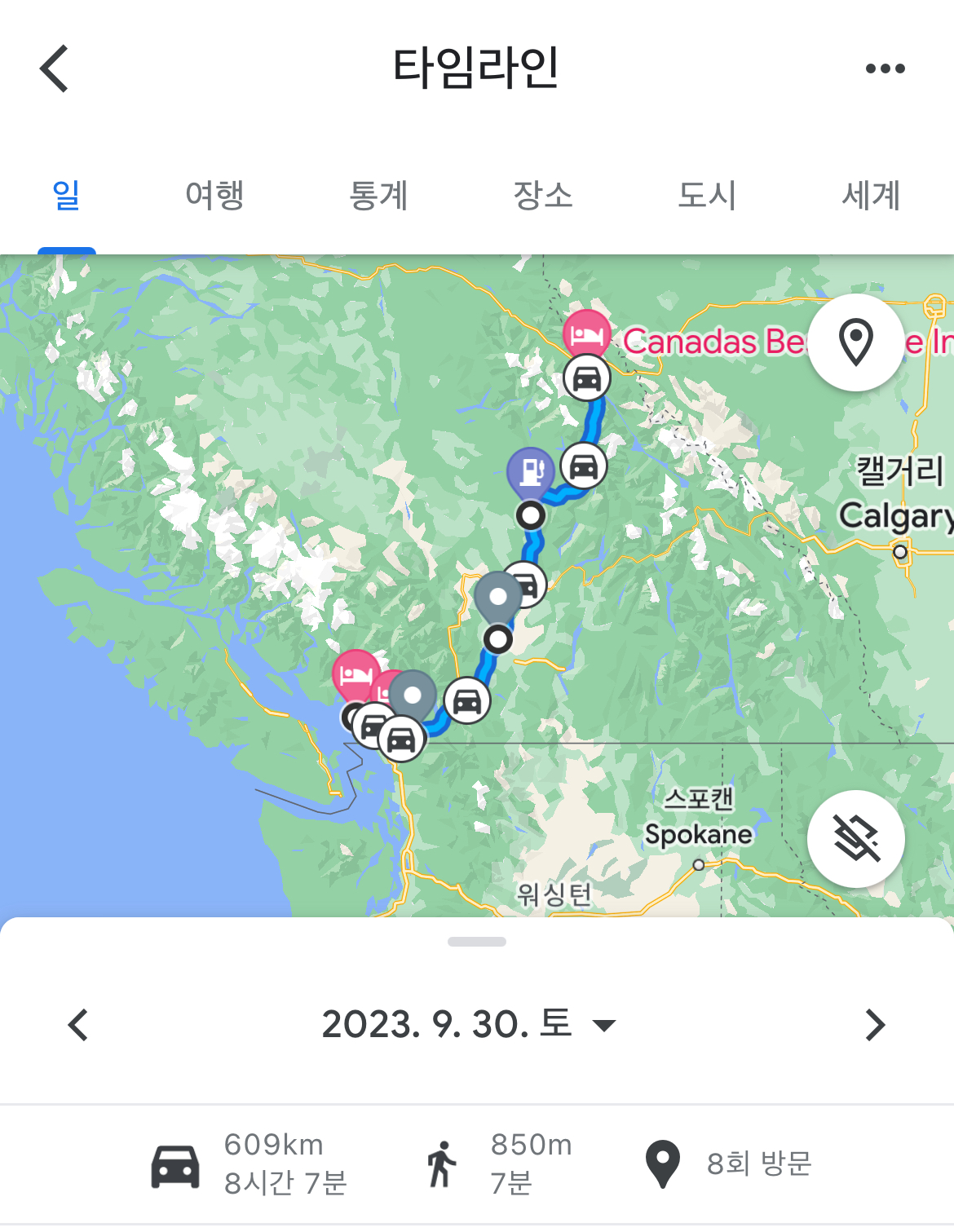 9월 30일. 일어나 보니 오전 6시. 두세 시간밖에 못 잤다. 망할 놈의 술! 숙취가 깨지 않아서 두통도 좀 있는 상태. 하지만 캐나다 록키 산맥 투어 미팅 장소에 오전 7시 45분까지 가야 한다. 서둘러 씻고 짐을 싸서 캐나다 플레이스 웰컴센터 광장에 도착했다. 함께 투어에 참여할 사람들이 속속 도착했고, 이내 투어버스가 출발했다.