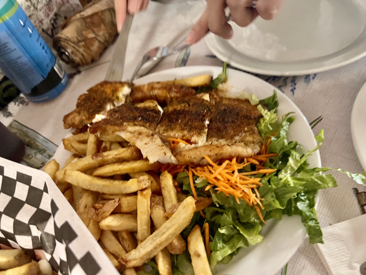 전형적인 피시앤칩스입니다. 어차피 가면 메인 디쉬는 필요하기 때문에 화이트 피시가 제일 무난한 선택지입니다. 바로 옆의 청정 호수에서 잡은 물고기인 만큼, 신선도 하나만은 보장됩니다. 깔끔하고 담백한 화이트피쉬는 거부감 없이 누구나 먹을 수 있을 것 같아요.