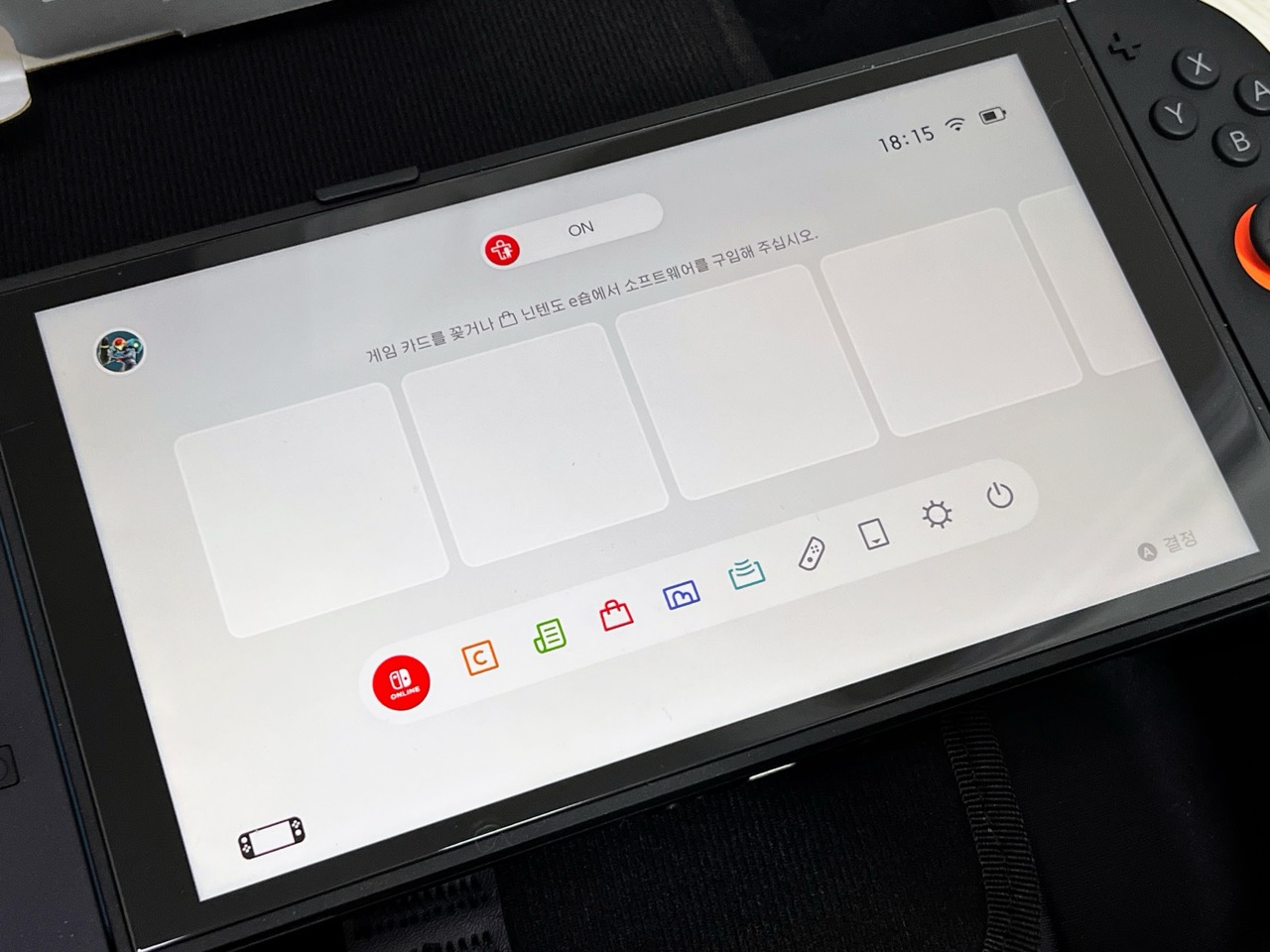 가장 먼저 보이는건 본체 디스플레이와 조이콘이네요.